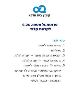 קיבוץ בית אלפא הזמנה לאספה הנכם מוזמנים לאספת חברים מס' 8/25 שתתקיים ביום רביעי 15.10.25 בשעה 20:00, במועדון לחבר. הקליקו להתחברות בזום סדר יום: בחירת