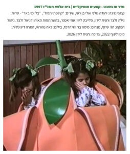 עלו ליוטיוב – מאוצרות ארכיון הוידאו שלנו: חנוכה 1997 – פעילות וטקס לילדים: הצגה לילדים "דירה להשכיר" – שנת ה-70 לבית אלפא 1992: