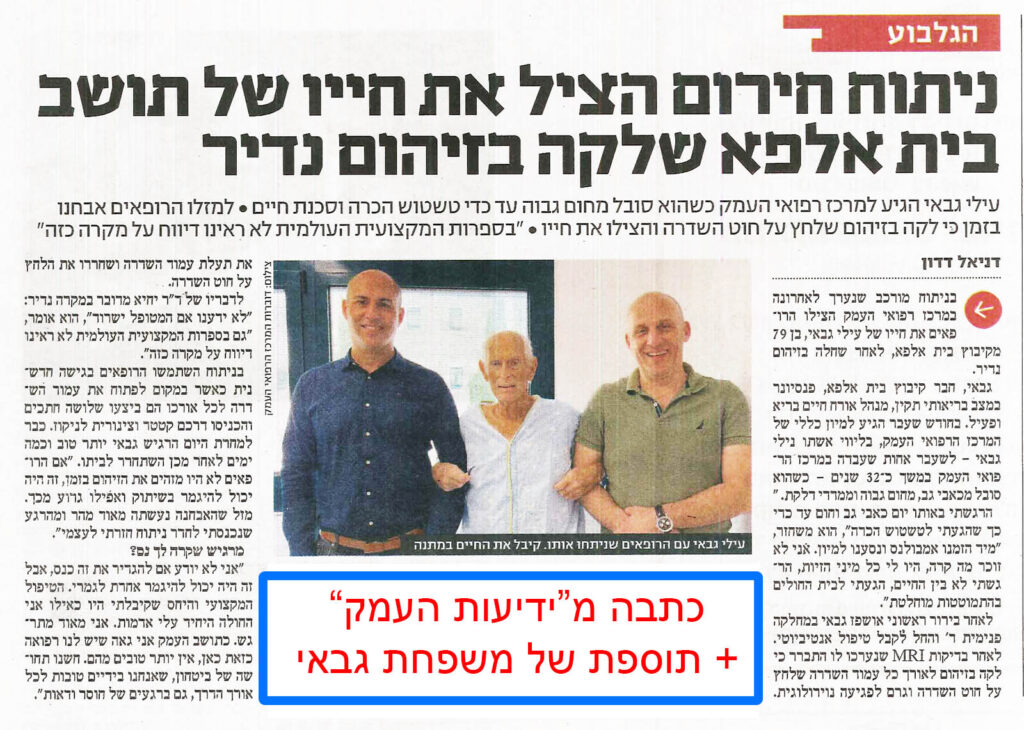 ניתוח חירום – כתבה ב"ידיעות העמק" + הרחבות